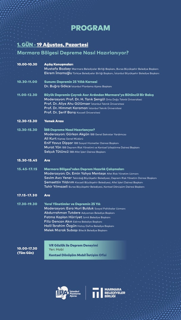 Marmara Belediyeler Birliği (MBB) ve İstanbul Planlama Ajansı (İPA) iş birliğinde, İBB Deprem Risk Yönetimi ve Kentsel İyileştirme Dairesi Başkanlığı ile KİPTAŞ'ın katkılarıyla düzenlenen program, afete karşı dayanıklılığı güçlendirme adına kritik başlıkları masaya yatıracak.