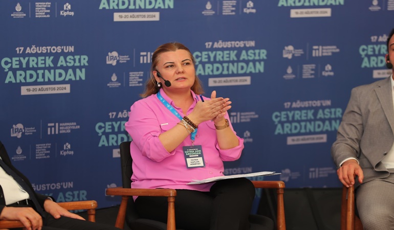 İzmit Belediye Başkanı Fatma Kaplan Hürriyet, Marmara Depremi’nin 25. Yıl dönümünde, Marmara Belediyeler Birliği (MBB) ve İstanbul Planlama Ajansı (İPA) iş birliğinde düzenlenen ’17 Ağustos’un Çeyrek Asır Ardından’ etkinliğine katıldı. ‘‘Yerel Yönetimler ve Depremin 25. Yılı’ panelinde konuşan Başkan Hürriyet, afet mahalle meclislerine değindi.