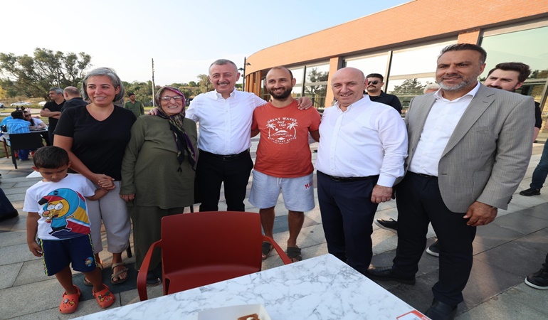 Kocaeli Büyükşehir Belediye Başkanı Tahir Büyükakın, Darıca Millet Bahçesi içerisinde bulunan Darıca Kütüphanesiyle Gülistan ve Türk İslam Bahçesinde vakit geçiren vatandaşlarla buluştu. Vatandaşlarla samimi bir sohbet gerçekleştirerek hizmetlerden memnuniyetlerini soran Başkan Büyükakın, kendisine iletilen talep, önerileri dinledi. Darıca Millet Bahçesi’nde yer alan sosyal donatı alanlarında keyifle vakit geçirdiklerini ifade eden vatandaşlar, şehrin merkezinde doğa ve denizle buluşmanın çok kıymetli olduğunu vurgulayarak projeyi Darıca’ya kazandıran Başkan Büyükakın’a teşekkür etti.