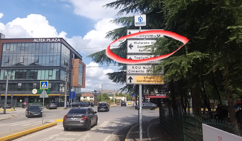 Kartepe Nur Caddesi üzerindeki tabela uzun süre önce taşınan askeri kışla olan Muharebe Hizmet Destek Komutanlığı’nı işaret ediyor.