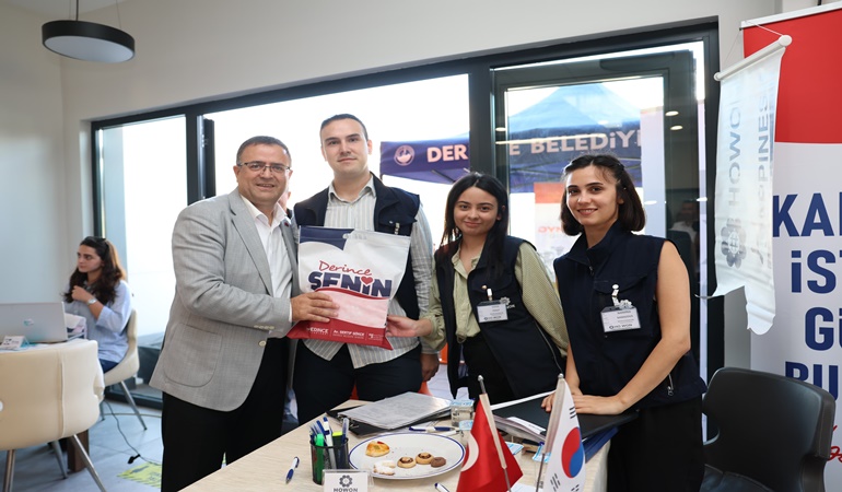 Derincelilerin huzuru ve mutluluğu için çalışmaları hız kesmeden sürdüren Derince Belediye Başkanı Av. Sertif Gökçe, sosyal belediyecilik noktasında önemli bir çalışmayı daha hayata geçirdi. İşsizlik sorununun çözümüne ve ekonomiye katkı sağlayacak olan Kariyer ve İstihdam Günleri Buluşması, Derince Belediyesi’nin ev sahipliğinde Dumlupınar Mahallesi’nde yer alan Abdullah Tayyip Olçok Gençlik ve Spor Merkezi’nde gerçekleşti. Nitelikli personel bulma konusunda şirketlere önemli fırsatlar sunan, iş arayan ve işvereni bir araya getiren Kariyer ve İstihdam Günleri Buluşması’na 25 firma katılarak, stant açtı. Katılımcılar gün boyu firmaların ilgili stantlarını ziyaret ederek, kendi yetenek ve ilgi alanlarına göre iş başvurusunda bulundu. Derince Belediye Başkanı Av. Sertif Gökçe’nin ev sahipliğinde gerçekleşen etkinliğe Belediye Başkan Yardımcısı Mehmet Turan, meclis üyeleri, iş dünyasının önemli temsilcileri, çeşitli sektörlerden firma yetkilileri ve insan kaynakları uzmanları ile vatandaşlar yoğun ilgi gösterdi.