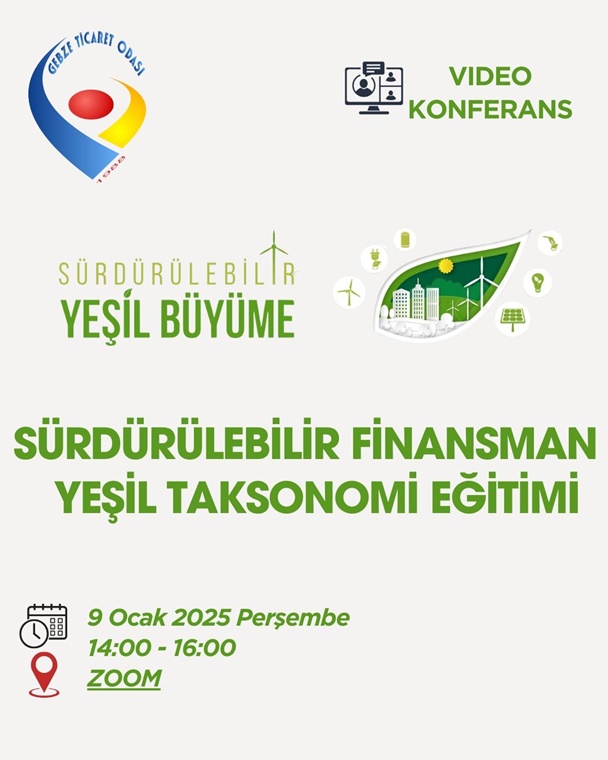 İş Dünyası, 06 Ocak 2025 11:51Gebze Ticaret Odası (GTO), iş dünyasının sürdürülebilir kalkınma hedeflerine ulaşabilmesi için önemli bir adım atıyor. GTO tarafından 9 Ocak Perşembe günü saat 14:00’te video konferans aracılığıyla düzenlenecek olan Sürdürülebilir Finansman ve Yeşil Taksonomi Eğitimi, şirketlerin yeşil finansman uygulamaları ve sürdürülebilir yatırımlar konusunda bilgi sahibi olmalarını amaçlamakta.