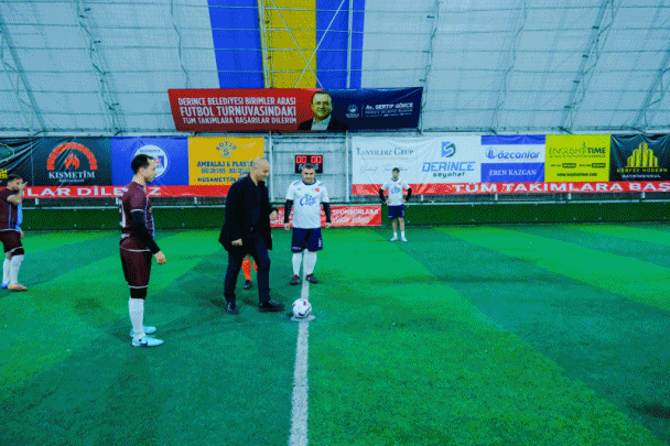 Derince Belediyesi’nin birimler arasındaki iletişim ve dayanışmayı artırmak amacıyla düzenlediği futbol turnuvasında heyecan başladı. 12 takımın iki ayrı grupta mücadelesine sahne olacak olan turnuvanın açılış günü nedeniyle bir program düzenlendi. Yenikent Halı Saha Tesisleri’nde gerçekleşen açılış töreni Derince Belediye Başkan Yardımcısı Taner Elyıldırım, meclis üyeleri, muhtarlar, belediye daire müdürleri, sporcular ve vatandaşların yoğun ilgisi ile gerçekleşti. Gruplarında ilk dörde giren takımların adını çeyrek finale yazdıracağı organizasyonun açılış maçında Park ve Bahçeler Müdürlüğü ile Çenesuyu A.Ş. takımları karşı karşıya geldi.