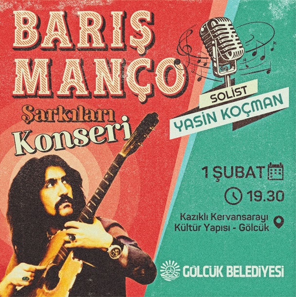 Gölcük Belediyesi, Türk müziğinin efsane ismi Barış Manço'yu vefatının 26. yıldönümünde anmak amacıyla özel bir etkinlik düzenleyecek. 1 Şubat 2025 Cumartesi günü, saat 19.30'da Kazıklı Kervansarayı Kültür Yapısı'nda gerçekleştirilecek olan "Barış Manço Şarkıları Konseri" ile muhteşem sanatçının şarkıları, müzikseverlerle buluşacak. Konserde, Barış Manço'nun en sevilen ve hafızalarda iz bırakan şarkıları, solist Yasin Koçman tarafından seslendirilecek. Etkinliğe katılmak isteyen vatandaşlar için Gölcük Anıtpark ve Değirmendere Çınarlık Meydan’dan saat 19.00’da ücretsiz servis hizmeti sağlanacak.